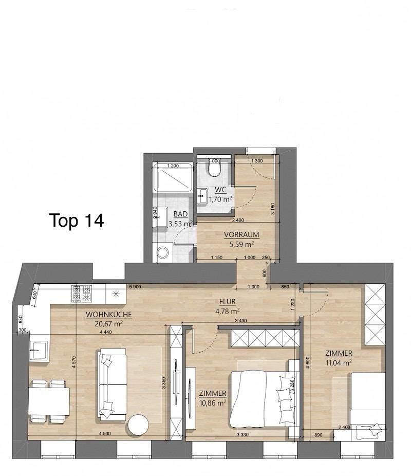 Im 2. und 3. Stock werden die Altbauwohnungen topsaniert. Im Dachgeschoss wurden insgesamt 6 Wohnungen errichtet.
